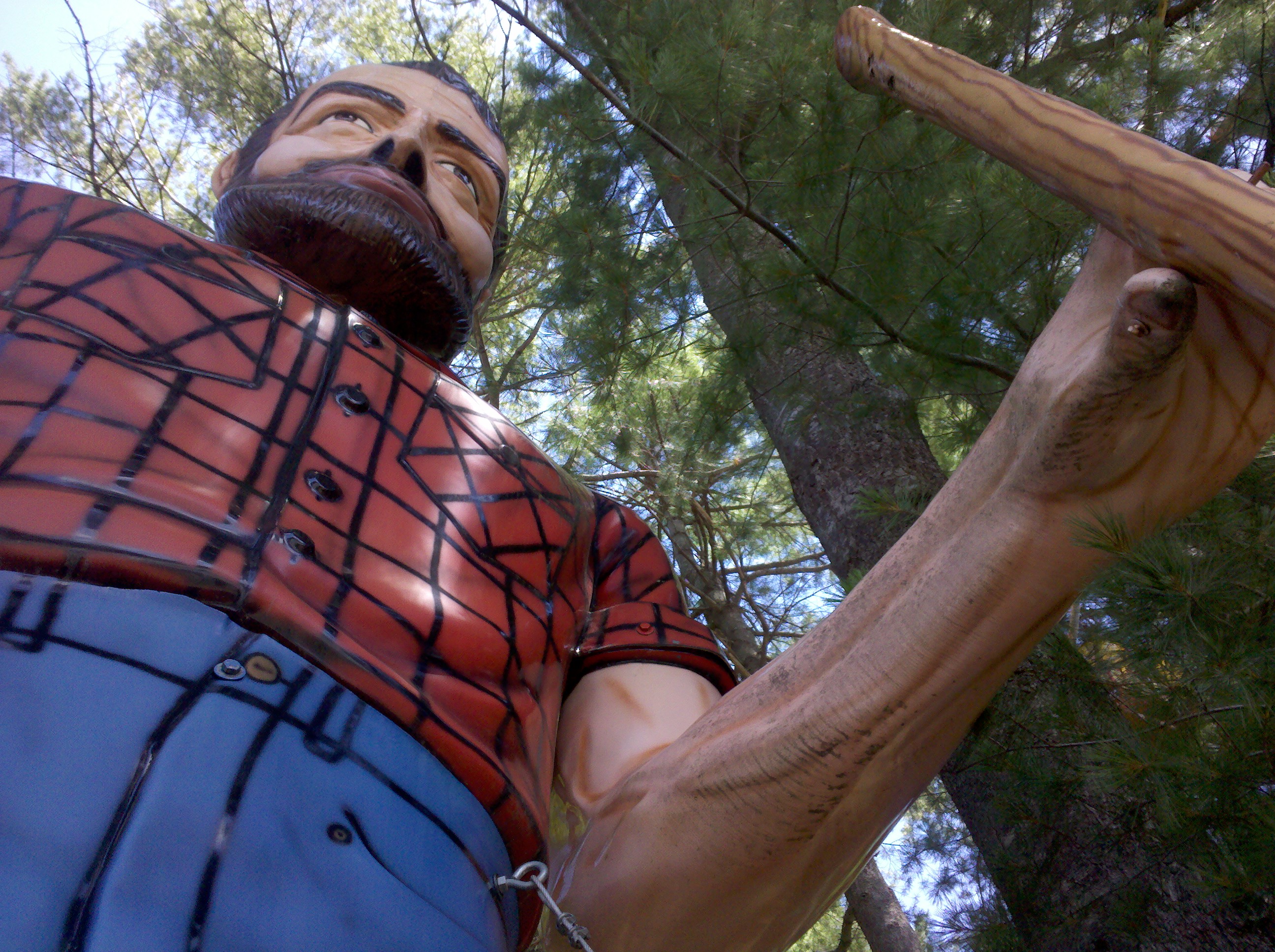 It’s been awhile since I have worked on my progressive list of Muffler Men sightings, so lets pick up again with sighting #67 in upstate NY. The Bunyan Muffler Man at Magic Forest, was the last one I visited at the amusement park. Like the rest of the Muffler Men there, it is hard to say where he came from. While some of them can be traced back to the Danbury Fair, I have had no luck tracing his origins. He is the only Muffler Man located close enough to the fence, that you can get some good pictures if the park happens to be closed or you don’t want to pay for admission but still see a Muffler Man.