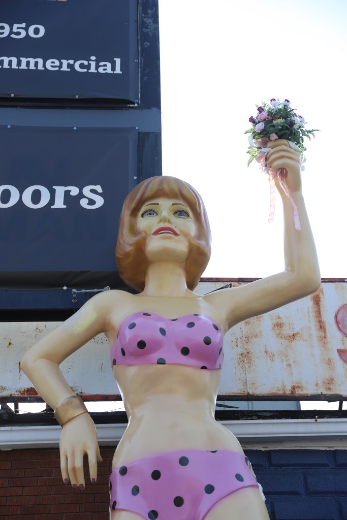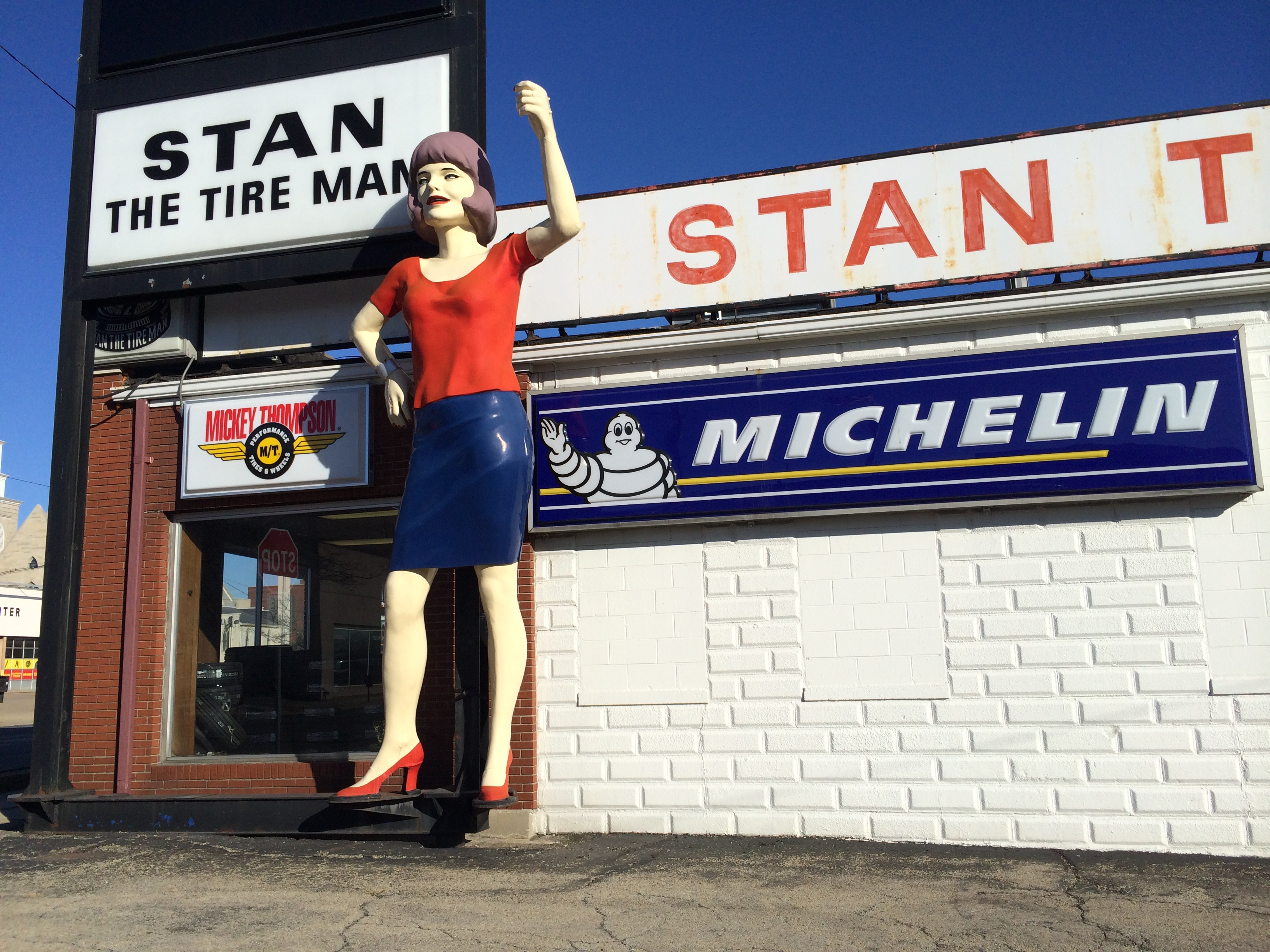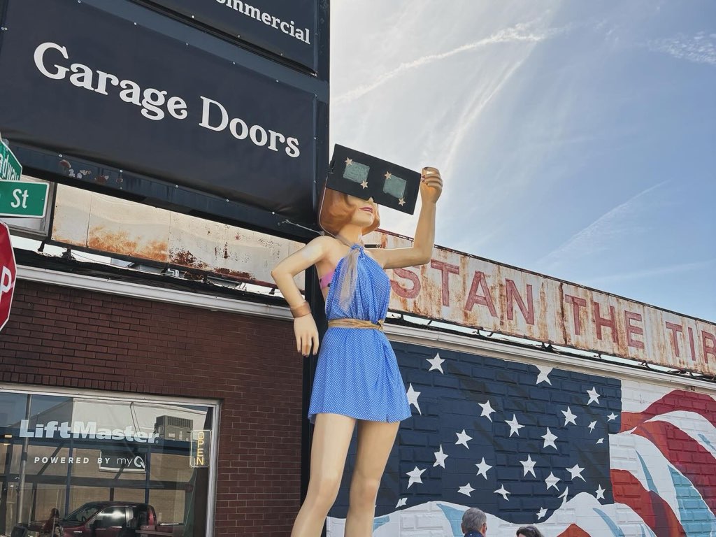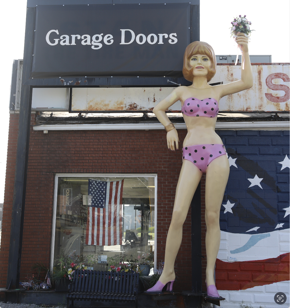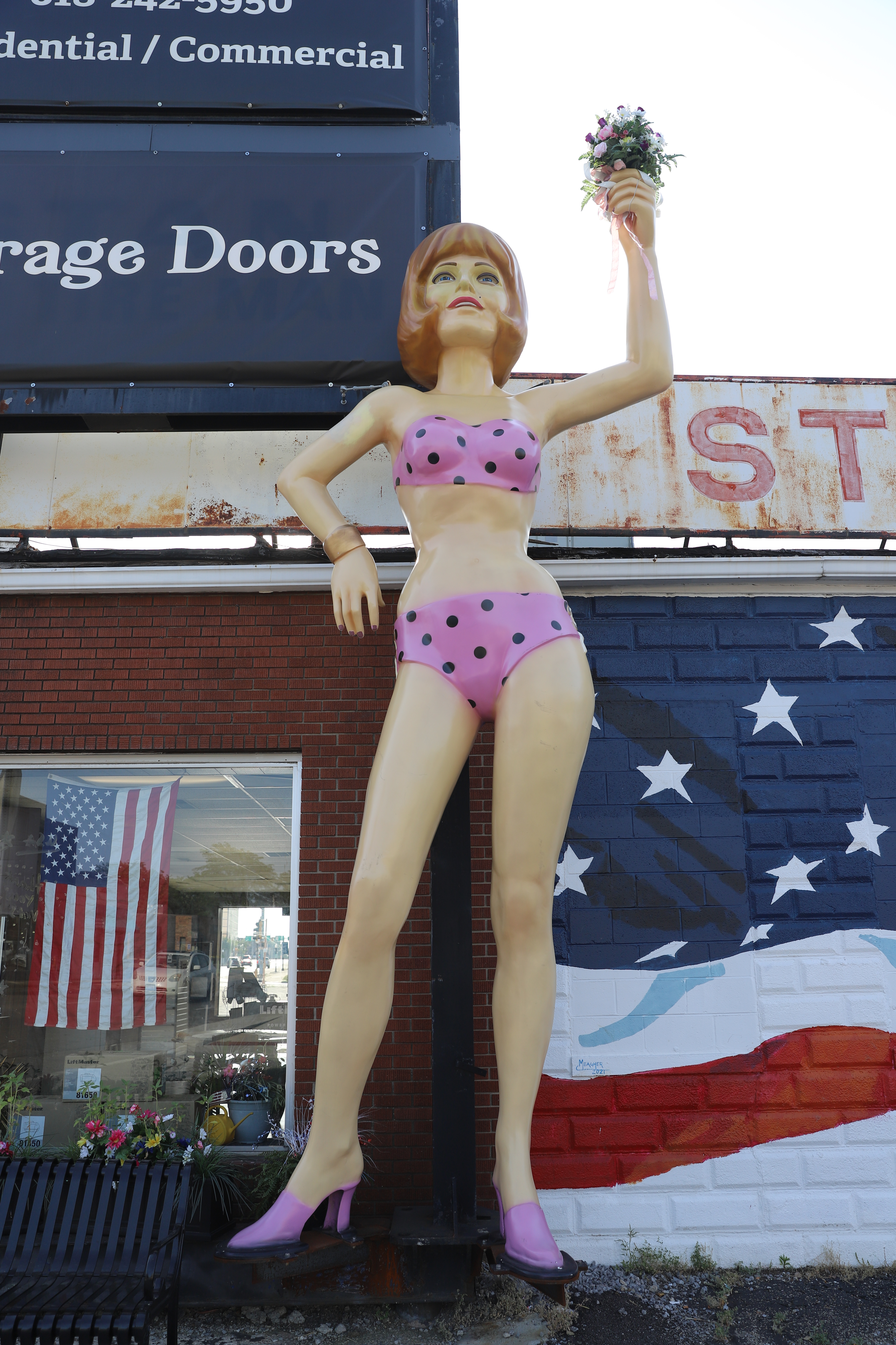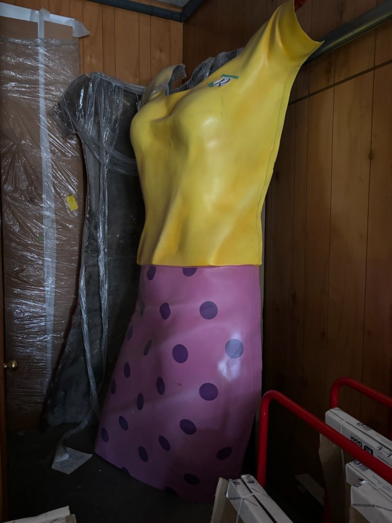 American Giants recently ran another sale for a Muffler Man, this time one of the female versions. The giant was located at the old Stan the Tire Man location in Mt Vernon, IL. This particular gal is unique in that she still had her original shirt and skirt and comes with a full and rich Uniroyal and International Fiberglass history. The giant was used as part of a roving promotion program in the late 60s for Uniroyal Tire and ended up in Southern IL when the program ended. She was purchased by Stan the Tire Man business and even stood with a Bunyan Muffler Man for a few years in the 70s. She was eventually moved to Mt Vernon and stood there till 2015 when she was sold and moved to California. She was fully restored in California and stood in Hayward till she was sold and returned to Mt Vernon in 2021. Her current owners in Mt Vernon sold her in September of 2024 and she will be relocating to Texas.