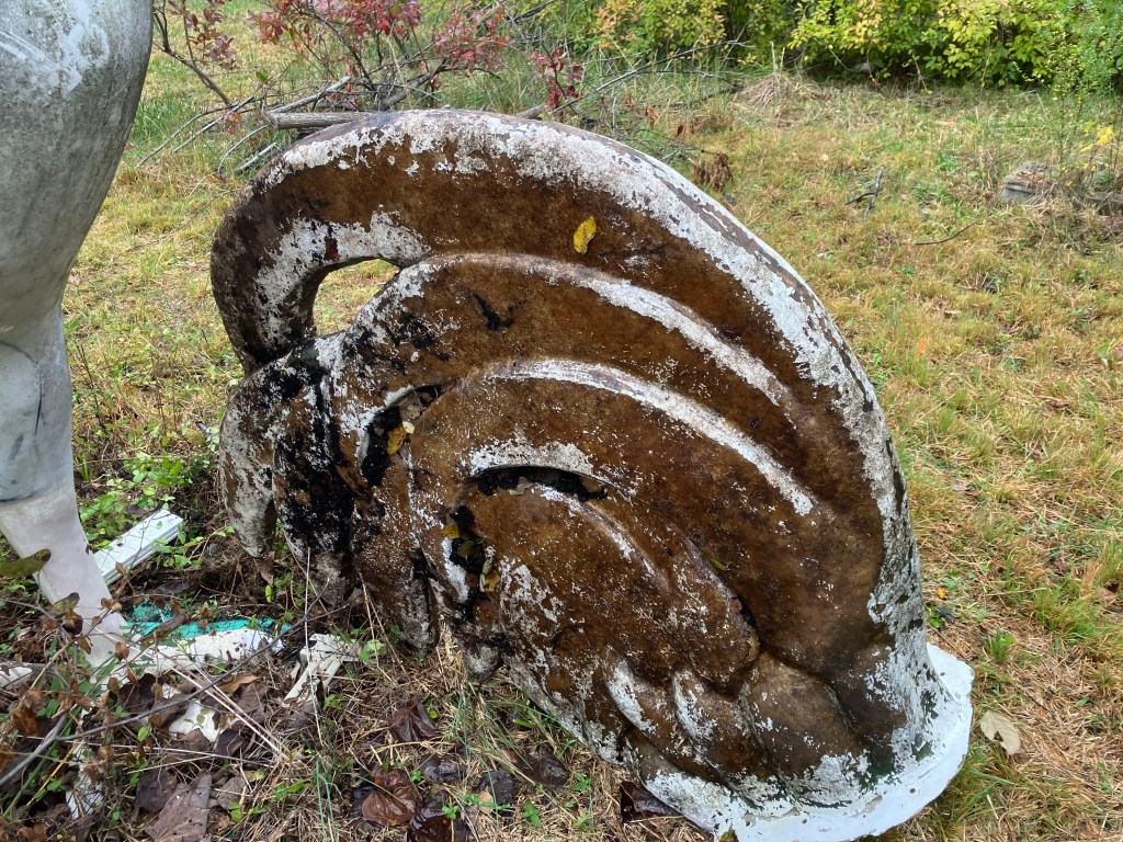 Fiberglass Pheasant History – This giant fiberglass pheasant is the original sculpture pulled from the mold and commissioned by the City of Gregory in 2000, later erected in 2004. It was the final piece ever created at FAST by founder Jerry Vettrus, who had recently sold the company but stayed on as a consultant. Jerry not only sculpted this artwork but personally hand-painted it for display along the highway. As the only original copy tied directly to Gregory, SD, it carries substantial artistic and historic significance. The pheasant shows some wear, including damage to the breast area and a missing section of the tail. When standing, the head reaches approximately 7–8 feet high, and the full tail height is about 10 feet; when hauled lying on its breast, it measures 11’10” from breast to tail tip and requires 14 feet of bridge clearance. The piece weighs an estimated 300–400 lbs—light enough to tip and maneuver with effort but far too heavy to lift from one side. Statue is located near Minneapolis, MN (Ends on Dec 7)