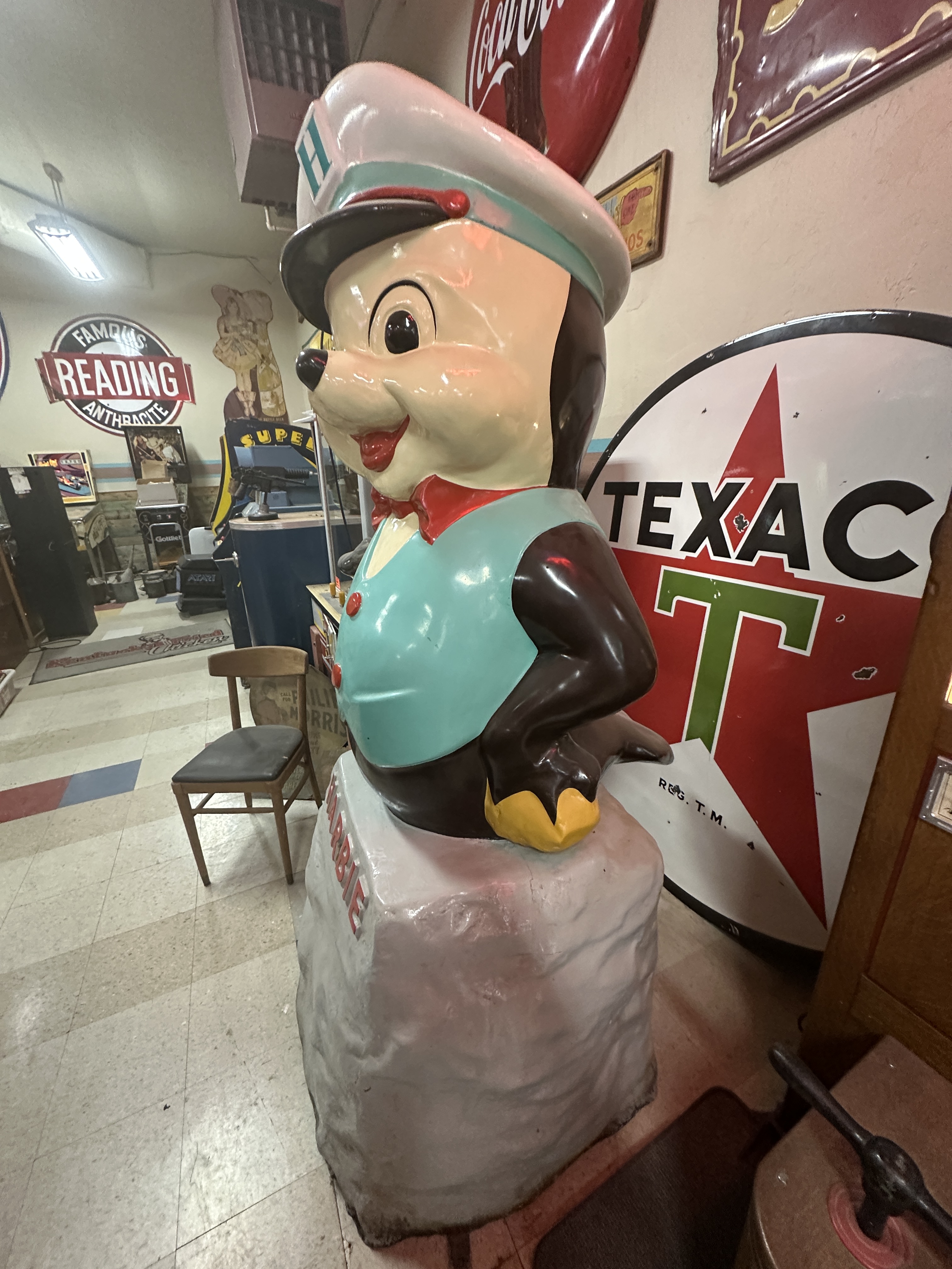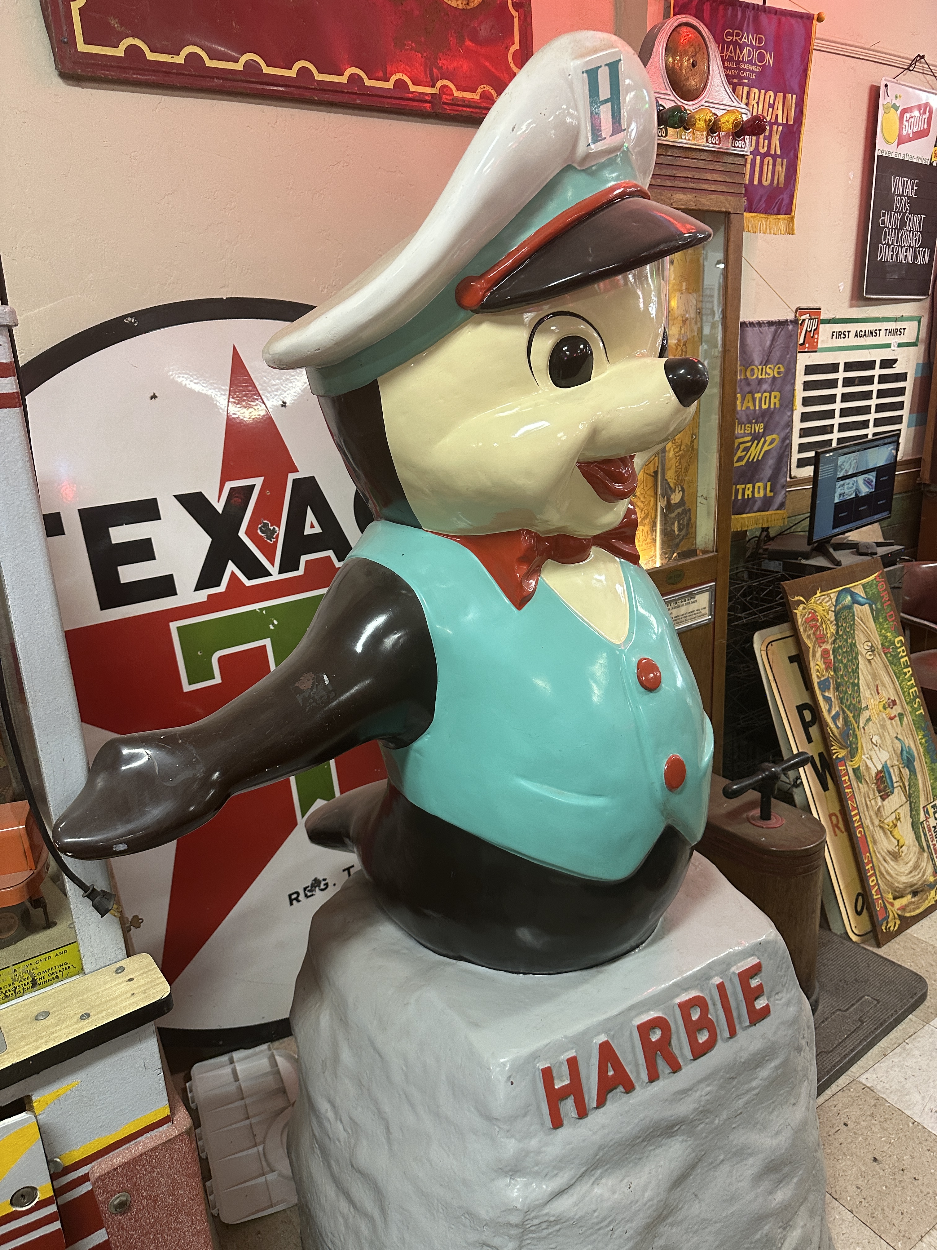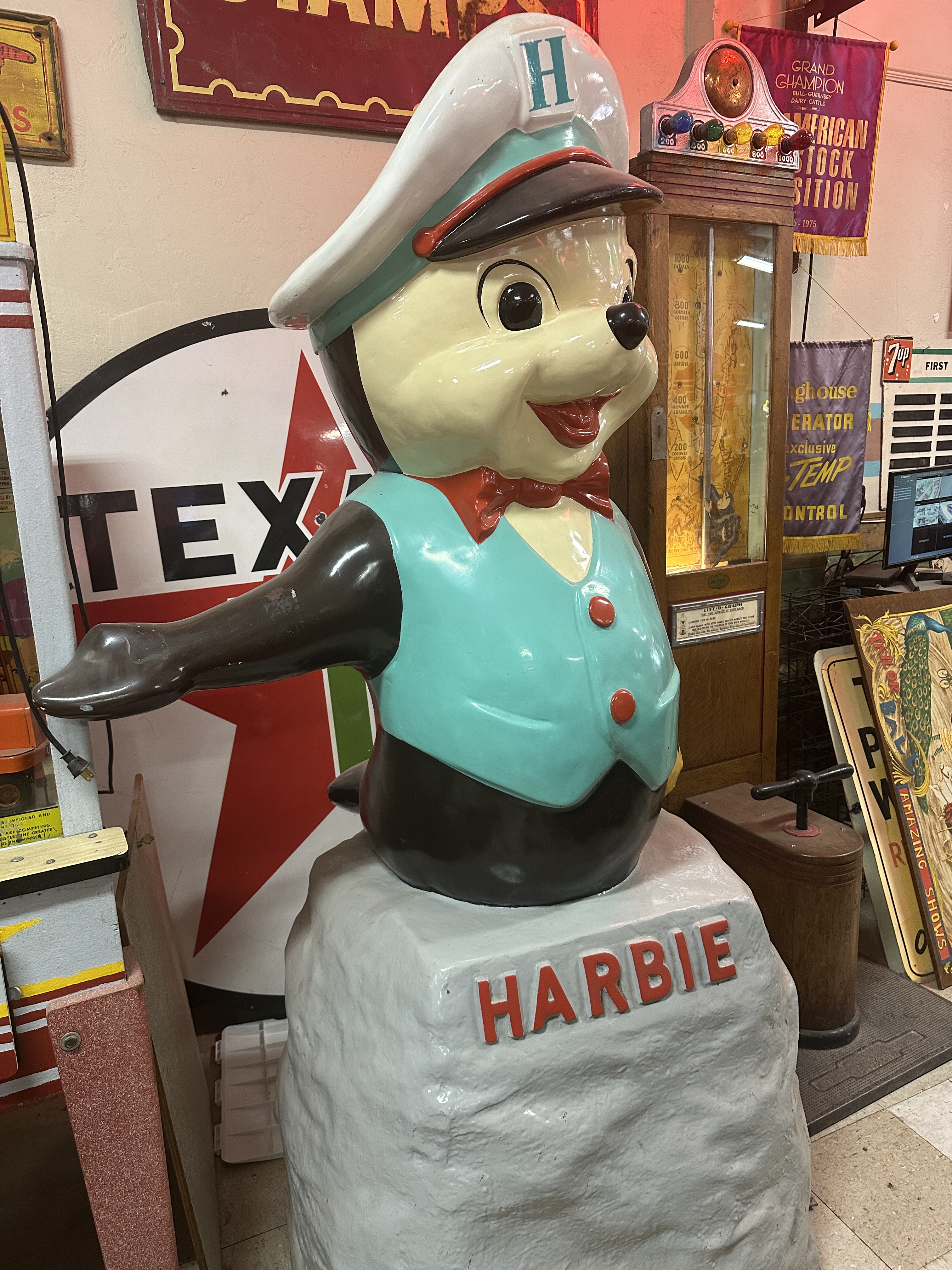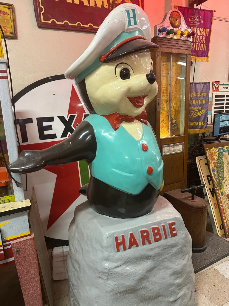 Harbie Seal History – This is an original Harbie the Seal Statue that is in excellent condition and was most likely restored or repainted at one point in time. The giant is owned by Hatch, NM collector Teako Nunn who purchased the statue around 2005. The statue has been kept indoors and is not missing anything but all details and parts are there. The seal originally came from Southern California but his exact location is unknown. Please contact us for weight or dimensions. Buyer is responsible for take down and transport. Seller will give up to 2 months for buyer to pickup. Statue is located in Hatch, NM The seal is 79″ tall 42″ wide and 40″ deep. (Ends on Nov 30)
