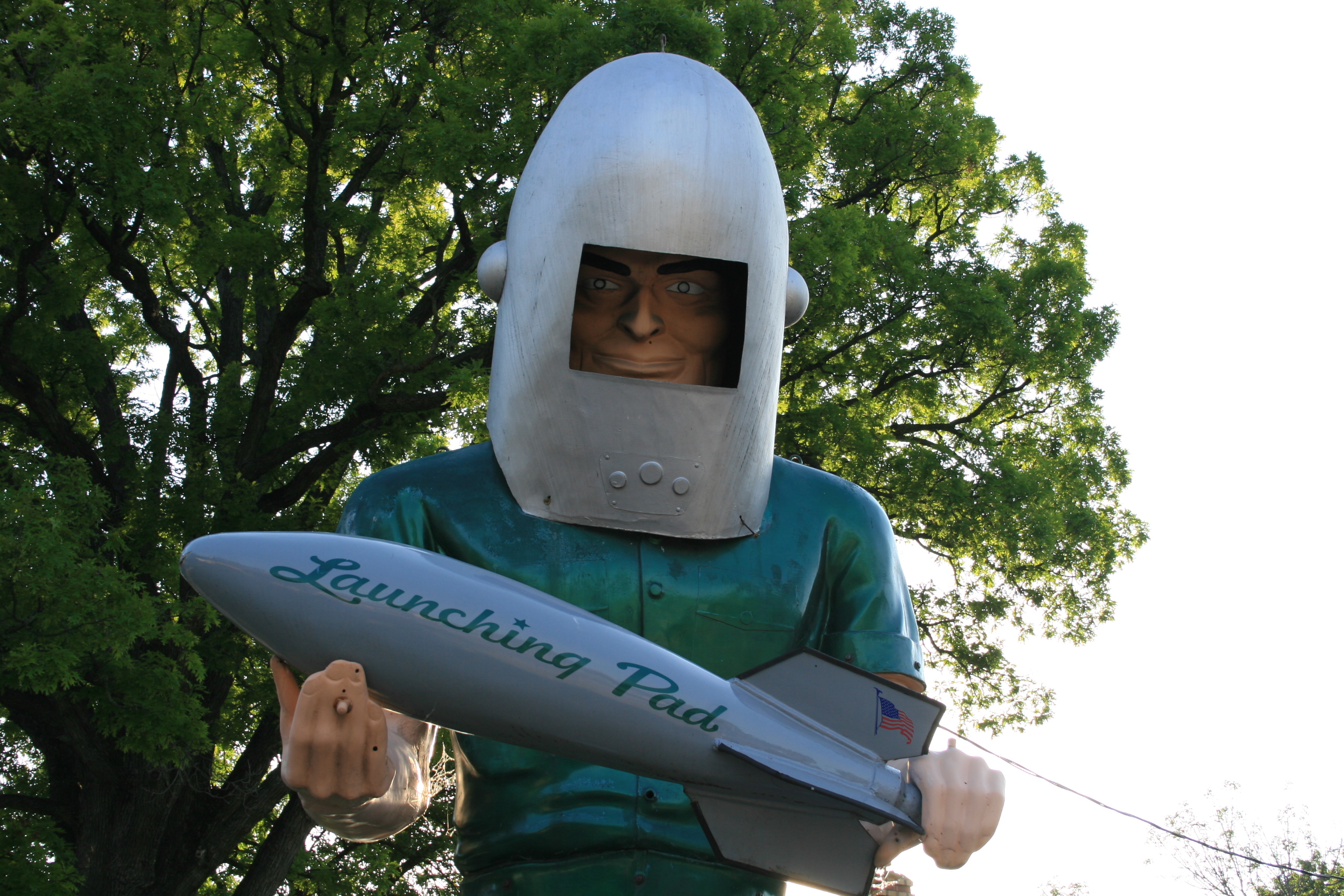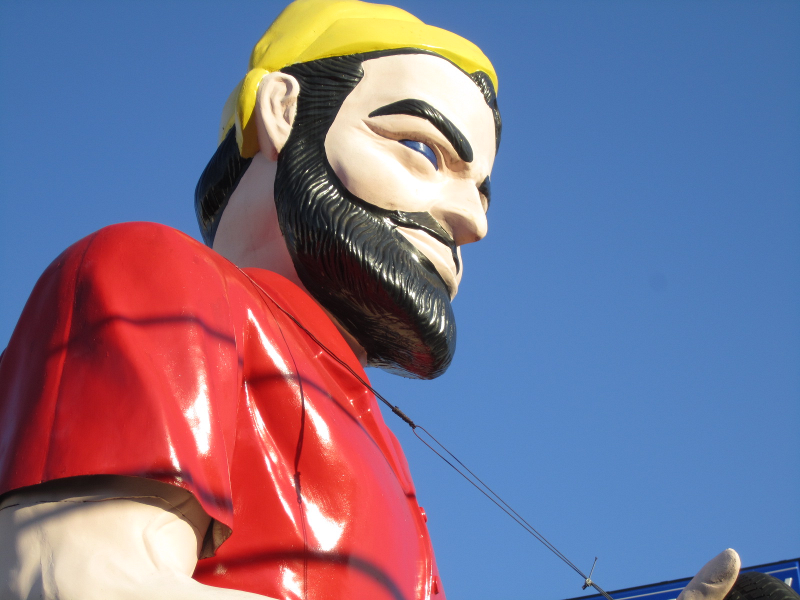 Because they are rare it is always nice to come upon one of the 15 ft versions of muffler men. As I mentioned in AG Episode #1 after a few years of turning out the full size version of muffler men with great success, Steve Dashew owner of International Fiberglass wanted to offer customers more. He came up with the idea to make these shorter and lighter
