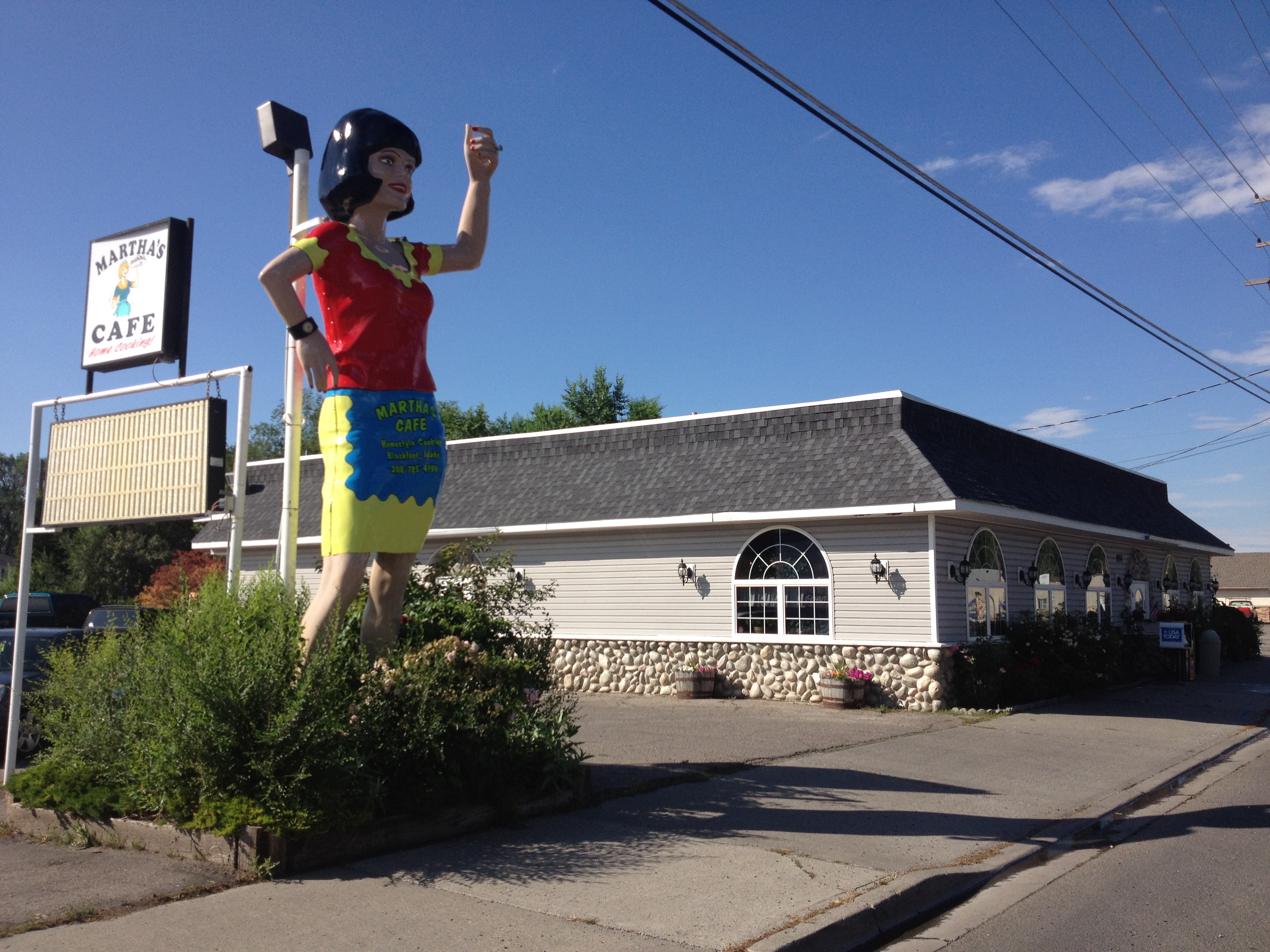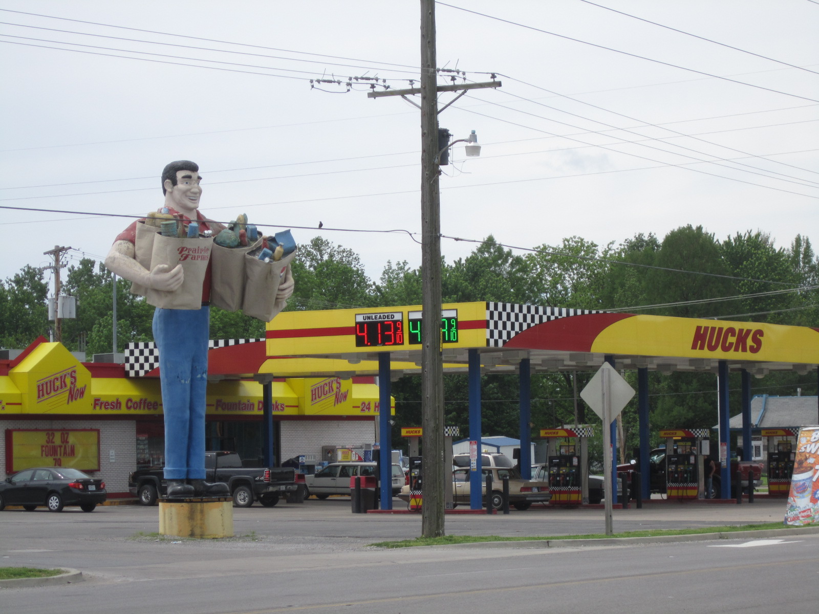 sported an orange bikini. I’m not sure how many were made but altogether I have heard of 17 of them so far and 12 of those are still visible today. Needless to say these are one of the less common muffler men and new sightings almost never happen. International Fiberglass also made a skirt and shirt for the giant lady and these could be put on or taken off at the owners will. The Uniroyal girl in Peoria, IL is changed seasonally and during the winter she wears her clothes and during the hot summer she sports a red bikini.